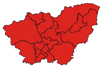 As of 2017, all four metropolitan borough councils (Barnsley, Doncaster, Rotherham and Sheffield) were under Labour control, and the Conservatives did not hold a single seat in Rotherham or Sheffield.[13] However, in the 2019 general election, the Conservative Party won three seats in South Yorkshire for the first time: Don Valley, Rother Valley and Penistone & Stocksbridge. Labour had considerably reduced majorities in the remaining seats in Barnsley, Rotherham and Doncaster and in Sheffield South East and Sheffield Hallam, although their support remained strong in the other Sheffield constituencies.