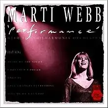 Performance is a 1989 studio album by Marti Webb (born 13 December 1944, Hampstead, North West London) with the Philharmonia Orchestra. Although originally released in 1989 on LP it has subsequently been released in 1993, 1994 and 1996 on CD.