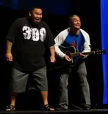 Well-known New Zealand comedians include Rose Matafeo, Billy T James, The Flight of the Conchords, Dai Henwood, John Clarke, and the Topp Twins.[62] Hens' Teeth Women's Comedy Company is a woman-only comedy troupe based in Wellington, founded in 1988.[63] Comedians Tofiga Fepulea'i and Eteuati Ete formed the Laughing Samoans in 2003 and toured a new show annually for many years starting in 2003.[64]