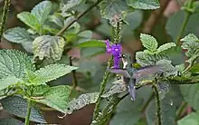 The Peruvian piedtail perches to take nectar from flowers and to glean small insects from foliage.[5]