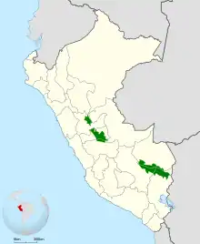 The Peruvian piedtail has a discontinuous distribution in central and southeastern Peru. It occurs in the east Andean foothills of Huánuco, Pasco, Cuzco, and Puno departments. It inhabits the interior of primary and secondary forest. In elevation it is most numerous around 1,000 m (3,300 ft) but ranges between 750 and 1,500 m (2,500 and 4,900 ft).[5]