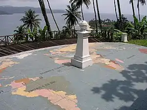 Mark of the Equator erected by Gago Coutinho southwest of the resort and the view of São Tomé Island