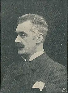 In January 1864 he became an officer aspirant and was part of the 9th Battalion in Fredericia, followed next month with Paul Ulrich Scharffenberg's brigade to Dybbøl and was wounded during the storming on the fortifications on 18 April.[2][3] After his wounds were attended, he joined the rest of the campaign as a reserve second lieutenant. He was sent home after the conclusion of the peace and now had to study at the artium again; but for the second time the military stand took him and kept him. In 1866 he became second lieutenant of the 19th Battalion stationed at Nyborg, and in the next year was promoted to First Lieutenant and assigned to the 18th Battalion stationed in Copenhagen and Elsinore, in 1881 as captain and company commander of the 22nd Battalion at Elsinore was transferred 1888 to the 4th Regiment at Copenhagen. Finally, in 1893, he was appointed commander of the 15th Battalion stationed at Kastellet and the following year as a lieutenant colonel. He was posthumously promoted to Colonel after his retirement in 1904.[2]