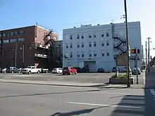 The Peter G. Van Winkle House was a historic home located in the Julia-Ann Square Historic District in Parkersburg, Wood County, West Virginia. It was built between about 1880 and 1899, and was a two-story duplex in the Queen Anne style. It featured a deck hipped roof with intersecting gables, turrets, and dormers. It was built on property once owned by former United States Senator Peter G. Van Winkle, who died in 1872.[2]