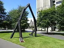 In 1978 Nicholls represented New Zealand at a Sculpture Symposium held in tandem with the Edmonton 1978 Commonwealth Games.[7] While there, Nicholls created the thirteenth work in the New Land series, which would serve as the maquette for a major kinetic sculpture, Counterpoise (1978), commissioned for the Muttart Conservatory in Edmonton.[5] His time at the University of Wisconsin-Superior resulted in the Wisconsin series: Wisconsin 7, renamed Measure (1981), today stands in the courtyard of the University of Auckland School of Architecture and Planning.[8]