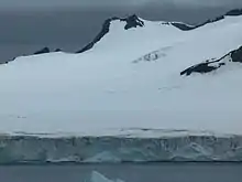 Petko Voyvoda Peak from Half Moon Island, with Sopot Ice Piedmont in the foreground.