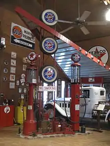 Petroliana is a category of collectibles that is related to gas stations or the petroleum industry.[1] Petroliana memorabilia include items such as old gas pumps, fuel advertisements, enamel or tin signs, oil cans and tins, and road maps.