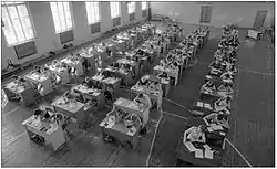 In 1970s special attention was also paid to the technical equipment of the university. Eight classrooms were equipped to display movies and two classrooms became language laboratories. Computer classrooms were also upgraded and the third generation computers ES-1022 and ES-1035 were installed.[24]
