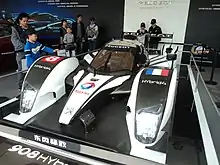 The Peugeot 908 is an auto racing car developed by Peugeot Sport in 2011 for the Le Mans Prototype category of racing. Powered by a diesel engine, it is the successor to the Peugeot 908 HDi FAP which competed since 2007. The newer 908 features a smaller diesel than its predecessor, utilizing a 3,700 cc (230 cu in) HDi V8 engine with Honeywell Turbo Technologies turbocharger[3] in order to meet new regulations for 2011. The 908 has competed in all rounds of the 2011 Intercontinental Le Mans Cup including the 2011 24 Hours of Le Mans. The new 908 lost about 150 bhp compared to 2010 but improvements in the chassis and handling made the car much more agile. Unlike its predecessor the front tyres are the same width as the rear. The only part that has been reused from its predecessor was the windscreen wiper.[4]