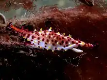 Phenacovolva rosea, also known as the rosy spindle cowry,[2] is a species of sea snail, a marine gastropod mollusc in the family Ovulidae, the ovulids, cowry allies or false cowries.[1] It lives and feeds on fan, whip and bush-type gorgonians.