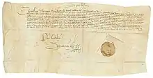 Philibert du Croc withdrew to his land in Auvergne but he proved himself useful, such as in 1583, when he was tasked by the governor of Auvergne to pacify a conflict between several noblemen.[31] In April 1585, during the troubles of the Catholic League, Henri III wrote to him to appeal to his loyalty and prevent any action detrimental to the crown on his land.[32] On 20 June 1585, the Duke of Montpensier thanked him for the good service that the inhabitants of Thiers received from him and his son and asked him to continue[32] Philibert du Croc signed his testament on 2 May 1587 and died shortly afterwards, the same year as Mary Stuart.[29]