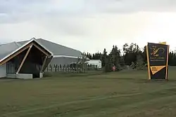 The River of Death and Discovery Dinosaur Museum Society, not-for-profit society formed in 2010, was created with the goal of opening a paleontology museum in the area to showcase the rich history of the area.[3] In 2011 the society changed the name of the proposed museum from River of Death and Discovery Dinosaur Museum to the Philip J. Currie Dinosaur Museum, owing to the support and notoriety of the Canadian paleontologist and concerns over the previous name.[4] Much of the funding for the CA$26-million museum came from the County of Grande Prairie ($7-million, eventually $19.39-million), which owns the building and 10-acre site, as well as the City of Grande Prairie ($3.5-million), Municipal District of Greenview ($250,000), the Government of Alberta ($10-million) and private donations.[5] The county and society commissioned Teeple Architects of Toronto to design the 3,800 square metres (41,000 sq ft) LEED certified building, with an intended opening date of December 2012.[6]