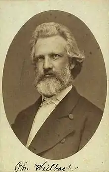 While his work as a critic was less notable than that of Lange, his contributions to the history of architecture were more successful. These included Hvem har bygget Frederiks Hospital? (Who Built Frederik's Hospital?) in 1899 and En bygning af Harsdorff i Trondhjem (A Building by Harsdorff in Trondheim) in 1901. However, he is remembered above all for his work on the first and second series of Denmark's biographical dictionary of artists and architects known as Weilbachs Kunstnerleksikon, first published in 1877–1878[3] and again in 1896–1897.[4] These solid works are based on rich background material as well as on archival sources and include personal contributions from artists who were still living at the time.[1] In 1892 Weilbach became a Knight of the Order of the Dannebrog.