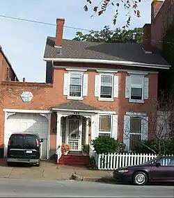 The Worley House is a two-story, Greek Revival, brick structure that was built on what is likely a stone foundation. The Greek revival elements, which is why this residence is considered significant, include a boxy form, side-gable roofline, elongated first story windows, and hipped porch roof.[4] The home also features an off-center front entrance and two windows on the first floor. There are three windows on the second floor that line up with the openings of the first. Wood shutters frame the sides of all the windows.