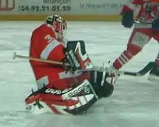 Philippe DeRouville (born August 7, 1974) is a Canadian former professional ice hockey goaltender. He played 3 games in the National Hockey League with the Pittsburgh Penguins during the 1994–95 and 1996–97 seasons. The rest of his career, which lasted from 1994 to 2008, was spent in the minor leagues and then in Europe.
