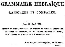 François Philippe Sarchi originally Samuel Morpurgo, born in Gradisca d'Isonzo in Italy in 1764 and died in Paris in 1830, was a lawyer, linguist, philologist of Illyrian origin, specializing in Italian and Hebrew.