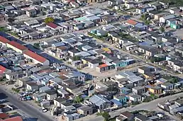 The nomadic Khoi pastoralists once used the land for grazing their animals and hunting for food.[2] The first community of local residents was recorded in 1833 during which time it was known as "Die Duine" (The Dunes).[3] The Philippi Germans arrived in Cape Town in three groups between 1860 and 1883, and became known for their ability to grow vegetables in the sandy soils of the Cape Flats.[4]