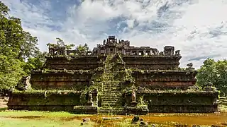 Phimeanakas (Khmer: ប្រាសាទភិមានអាកាស, Prasat Phimean Akas, 'celestial temple') or Vimeanakas (Khmer: ប្រាសាទវិមានអាកាស, Prasat Vimean Akas) at Angkor, Cambodia, is a Hindu temple in the Khleang style, built at the end of the 10th century, during the reign of Rajendravarman (from 941 to 968), then completed by Suryavarman I[1]: 115, 135 [2]: 371 in the shape of a three tier pyramid as a Hindu temple. On top of the pyramid there was a tower, while on the edge of top platform there are galleries. Phimeanakas is located inside the walled enclosure of the Royal Palace of Angkor Thom north of Baphuon.[3]
