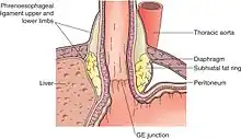 - Kwok H, Marriz Y, Al-Ali S, Windsor J (1999). "Phrenoesophageal ligament re-visited". Clin Anat. 12 (3): 164–70. doi:10.1002/(SICI)1098-2353(1999)12:3<164::AID-CA4>3.0.CO;2-N. PMID 10340456.
