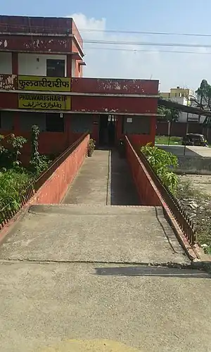 Phulwari Sharif Railway Station (Station Code: PWS), is a railway station serving the locality of Phulwari Sharif in the Patna district in the Indian state of Bihar.[1] The Phulwari Sharif railway station, is well connected to most of the major cities in India by the railway network, which lies in between Howrah–Delhi main line which serves it with numerous trains. Phulwari Sharif is well connected to Patna, Delhi, Mumbai, Kolkata, Varanasi, Kanpur, Guwahati and other cities.