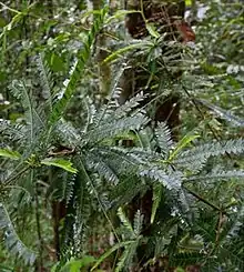 It was proposed that the accumulation of nickel to toxic levels was a defense mechanism against insects feeding on the sap, though Poaphilini moths have been observed to consume P. balgooyi leaves – the insects utilize the concentrated nickel for their own defensive mechanism against predators.[15] P. balgooyi's shed leaves also increase the concentration of nickel in the topsoil surrounding the plant, benefiting its seedlings while increasing the difficulty for competing seedlings of non-hyperaccumulating plants.[16]