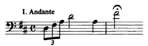 1. Andante - Allegro assai- The piano concerto opens with a Wagnerian horn solo that fades to light strings, a soft piano melody, and more strings before breaking into the main theme of the piece. The horn is prevalent throughout, as are the strings, before concluding in D Major.