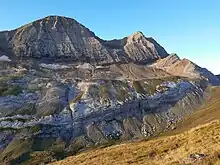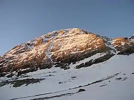 View from la Fausse Brèche on the Doigt de la Fausse Brèche with the Taillon summit (3,144 m) en fond et la pointe Bazillac en ombre portée.