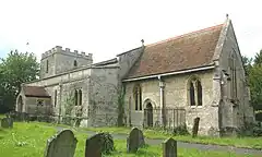 A number of Perpendicular Gothic windows were later added to the nave and one to the north wall of the chancel.[3][4] The present belltower was built in the 16th century.[3][4] St. Nicholas' parish church was repaired in 1826 and restored in 1855.[3] In 1898 it was restored again under the architect John Oldrid Scott,[3] whose alterations included replacing the chancel arch.[4] A 14th-century wall painting of Saint Christopher on the north wall of the nave was discovered in 1896 and restored in 1935.[1] St. Nicholas' church is a Grade II* listed building.[3]