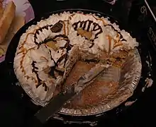 Chocolate peanut butter pie is a variation made with a filling of sweetened peanut butter layered into a pie shell made of frozen whipped cream and topped with a chocolate ice cream and whipped cream mixture. This pie is served frozen.[20]