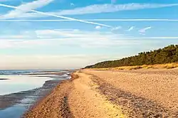 80% of the park's area are forests, 10% are beaches and dunes, while only 2% are human infrastructure.[4]:13 The park contains 24 identified EU biotopes that make up 84% of the territory. The most common biotopes are forested coastal dunes (2180), fixed coastal "gray" dunes with herbaceous vegetation (2130) and old boreal forests (9010).[4]:10 Other less common biotopes and those of conservation interest are embryonic shifting dunes (2110), foredunes (2120), forested coastal dunes and old boreal forests,[2] Northern boreal alluvial meadows (6450), and boreal Baltic coastal meadows (1630).[5]