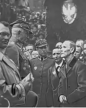 It was one of the centers of Silesian Uprisings and in 1922 was ceded to the Second Polish Republic by Weimar Germany as 86% of the population voted for joining the re-established Polish state. In June 1922, a symbolic ceremony of reintegration of Piekary with Poland took place. Polish Uhlans under the command of Stanisław Szeptycki entered Piekary, greeted by the St. Mary church by the local populace led by Wawrzyniec Hajda, local Polish independence activist and poet, nicknamed the "Silesian Wernyhora".[3] On July 10, 1939, Piekary Śląskie received city rights with effect from 1940. As a result of the outbreak of World War II, the actual implementation of this law did not take place until 1947.[3]