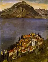 Called up on the outbreak of war, Piero initially managed to stay in Milan by procuring the job of decorating the Sant'Ambrogio barracks.[18] Later, in 1943, he took refuge in Switzerland, where he continued his artistic research and produced posters and lithographs for theatrical events and magazines.[19] This period represented an unprecedented opportunity for him, during which he created oil portraits, watercolours, drawings in Indian ink, ink and ballpoint pen, devoting himself to the study of the human body, which he would later draw on in his production of decorative graphic arts. During the same period he created the sets and some promotional materials for Albert Camus' Caligula directed by Giorgio Strehler.
