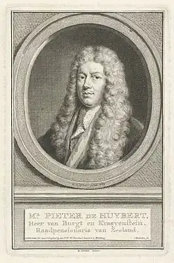 De Huybert (together with his nephew Justus) was instrumental in having William III recognized as First Noble[lower-alpha 3] in 1668.[4] He thereafter belonged to the Orangist faction in Zeeland and the Republic.[lower-alpha 4]