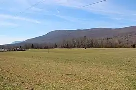 Pigeon Mountain is located to the west of LaFayette in the Cumberland Plateau.[4] At its highest point, the mountain has an elevation of around 2,330 feet (710 m).[1][7][8] The mountain runs in a northwest-southwest direction for about 10 miles, joining with Lookout Mountain on the southwestern end to form a V-shape. Between Pigeon and Lookout Mountains is a valley called the McLemore Cove.[4] The Tennessee Valley Divide crosses the western side of the mountain.[2] Most of Pigeon Mountain is located inside the Crockford-Pigeon Mountain Wildlife Management Area, maintained by the Georgia Department of Natural Resources.[5]