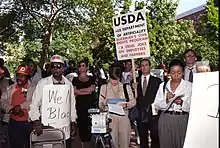 Studies in the late 20th century found that county and state USDA authorities, who were typically white in the South, had historically and routinely discriminated against African-American farmers on the basis of race.[8] A USDA official might overtly deny an equipment loan, telling the black farmer that "all you need is a mule and a plow", or telling the black farmer that the disaster relief is "too much money for a nigger to receive."[9] But more often, the USDA used paper-shuffling, delaying loans for black farmers until the end of planting season, approving only a fraction of black farmers' loan requests, and denying crop-disaster payments for black farmers, which white farmers were routinely granted.[9]