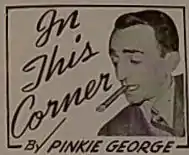 Georgeacopoulos was born to Greek parents Limberis "Louis" and Elizabeth Bolanis Georgeacopoulos in Lowell, Massachusetts on January 22, 1905. When he was a teenager he and his family (including younger brother Andrew) relocated to Black Hawk County, Iowa, where their surname was changed to "George".[1] After completing school, Pinkie embarked on a stint as a boxer; first as an amateur and then as a professional. Fighting as a flyweight, he completed in over 160 bouts with limited success.[4] On August 29, 1928, he suffered a knockout defeat to Speedy Dado which was a turning point in his tenure as a boxer.[1]