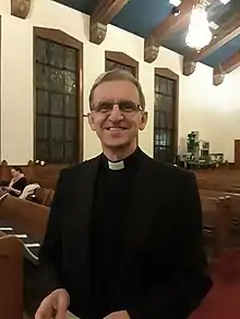 A native of Poznań,[1] Nawrot joined the Divine Word Missionaries in 1974, achieving ordination in 1981,[2] in the same year earning his degree from the John Paul II Catholic University of Lublin.[3] His first missionary assignment was to Paraguay, where he developed an interest in the reductions established by Jesuit priests in the 17th and 18th centuries.[2] He enrolled in the Catholic University of America in 1986, taking a master's degree in music and a doctorate in musicology.[3] Research undertaken as part of his studies led him to investigate the music left behind by the Jesuits in Bolivia; ultimately he discovered 13,000 pages of music held by members of the Moxo, Chiquito, and other tribes,[2][4] many in the Santa Cruz Department.[5] He also discovered music in the Convent of Santa Clara in Cochabamba.[6] He has since reconstructed, edited, and published more than thirty volumes of music from the reductions,[2] and continues to preserve and perform it with the assistance of local organizations and the Catholic Church.[1] Nawrot was awarded a Guggenheim Fellowship in 1998 for his musicological work.[7] A member of the Anthropos Institute and the Bolivian Academy of Ecclesiastical History, he became creative director of the International Festival of American Renaissance and Baroque Music, “Misiones de Chiquitos” in 1997.[3] He is also a member of the theology faculty of the Adam Mickiewicz University in Poznań.[8][9]