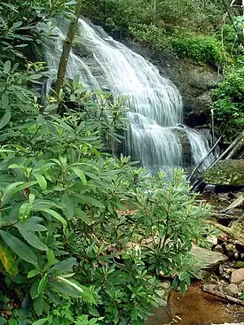 ![]() A waterfall in Pisgah National Forest, which can be reached from Butter Gap Trail. |
