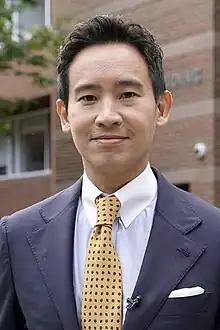 After graduating from secondary school in New Zealand, Pita went back to Thailand and pursued a bachelor's degree in finance from the Faculty of Commerce and Accountancy in Thammasat University where he graduated in 2002 with first-class honors and got a scholarship to study at the University of Texas at Austin.[7] While in Austin, Pita observed the 2000 U.S. presidential election, which he says impacted his views on politics.[8] He later received an international student scholarship from Harvard University, becoming the first Thai student to do so.[9][10][11] Pita has said his time at Harvard influenced his politics and the policies he would go on to pursue.[12]
