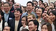 Two weeks after the dissolution of his party by the Constitutional Court on 21 February 2020, he was named as the new leader of the newly formed Move Forward Party (Thai: พรรคก้าวไกล, RTGS: Phak Kao Klai), where he was joined by 54 other members of parliament (MPs) from the disbanded party,[22][23][24][25] and was formally elected on 14 March 2020.[26][27]