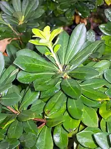 Pittosporum erioloma grows as a shrub or small tree. It is also known as the Lord Howe Island pittosporum or hedge laurel, though it is not a member of the laurel family.