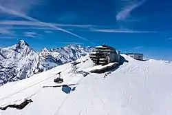Piz Gloria is a revolving restaurant at the 2,970 m (9,740 ft)-high summit of the Schilthorn near Mürren in the Bernese Oberland, Switzerland.