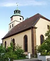 In 1626 the cemetery was laid out, and is still used today.[9] Many of Plüderhäusen's inhabitants died as a result of the Thirty Years' War, and many fled, so that of the approximately 1,800 inhabitants at the beginning of the war, only 57 remained at its end. Seven years later there were around 700 inhabitants again.[10] Barely recovered, the town was plundered again by the French under Villars in 1707. From 1793 through 1813 the French Revolutionary Wars and Napoleonic Wars unleashed countless brutal marches of Soldateska through the region.[10]