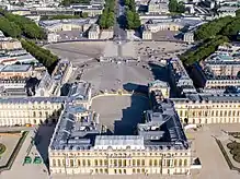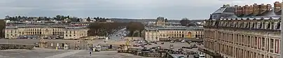 The Place d'Armes is a roughly fan-shaped square in front of the Palace of Versailles. It is approximately 300 m long and 150 m wide.