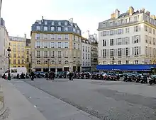 The plaza was built in 1779, and has concave-fronted buildings.[1][2] It was opened by letters patent on August 10, 1779, on the site of the Condé Hotel under the name of the Place du Théâtre-Français ("French-Theater Square"). It was later renamed to the Place de la Comédie-Française ("French-Comedy Square"), before taking its current name in 1807.[3]