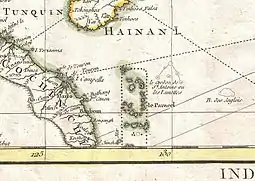 ![]() "I. de Pracel" south of Hainan in a 16th-century Nicolaes Visscher II map |