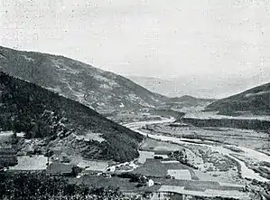The killings by the Montenegrin army in Plav-Gusinje had begun after the army entered in the region in late October. Ramë Isuf Kukaj was one of the first to be executed. He is considered to be the first person from Gusinje who was executed. A monument was erected in his memory in 2012.[10] The massacres intensified in March with the establishment of the military court. The pass of Previ (Qafa e Previsë/Previja) near Andrijevica was a main location in which executions took place. The total number of Albanians executed in Previ reached up to 700, many from the villages of Vuthaj and Martinaj.[11][12] The first death sentence by the extraordinary military court was carried out on March 5 in Racina, Plav. It involved some of the most prominent citizens of the town of Plav.[7]