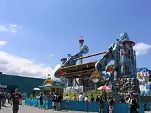 In addition to the permanent rides installed at the amusement park, West Coast Amusements (WCA) also brings in temporary rides to Hastings Park for the PNE's annual fair from mid-late August to early September.[58] WCA operates a travelling carnival circuit whose inventory includes over 100 amusement rides such as Ferris Wheels, Hurricane, Music Express, and Scrambler.[58][59] However, the lineup of rides that the WCA brings to the PNE varies from year-to-year.
