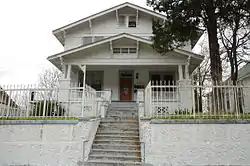 The Plaza Apartments are a historic residential building at 610 Spring Street in Hot Springs, Arkansas. It is a two-story wood-frame structure, with a front-facing gable roof, stuccoed exterior, and a single-story gabled front porch. The stucco has been painted to resemble stone blocks. The roof eaves are decorated with large Craftsman style brackets. The building was constructed about 1915 as a rooming house, and is a good local example of Craftsman styling. The building's interior has also retained significant period woodwork, including trim, doors, and stairs.[2]