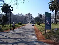 The plaza is flanked by important buildings, among them the former Tribunals Palace, now seat of the Faculty of Law of the National University of Rosario and of the Dr. Ángel Gallardo Provincial Natural Sciences Museum, and the former headquarters of the Santa Fe Provincial Police, now a delegation of the provincial government and host to a small museum of the last dictatorship (Centro Popular de la Memoria).